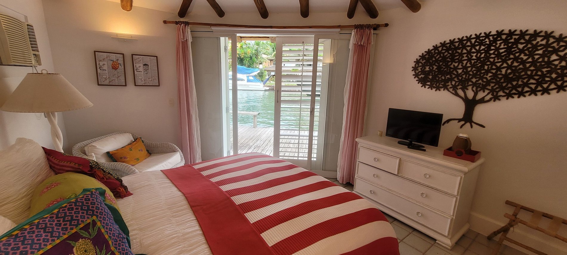 Casa ampla, nova, moderna e bem decorada, com deck e acesso ao mar. Localizada dentro do condominio Porto Frade. Sala de estar, sala de jantar com capacidade para 10 pessoas, area gourmet, churrasqueira, jardim, jacuzzi e piscina. Temos 7 suites muito confotaveis e todas com ar condicionado. Sauna com ducha no jardim. Cozinha completa, com fogão profissional e area de lavanderia com maquinas de lavar e secar. Estacionamento para 4 carros.
