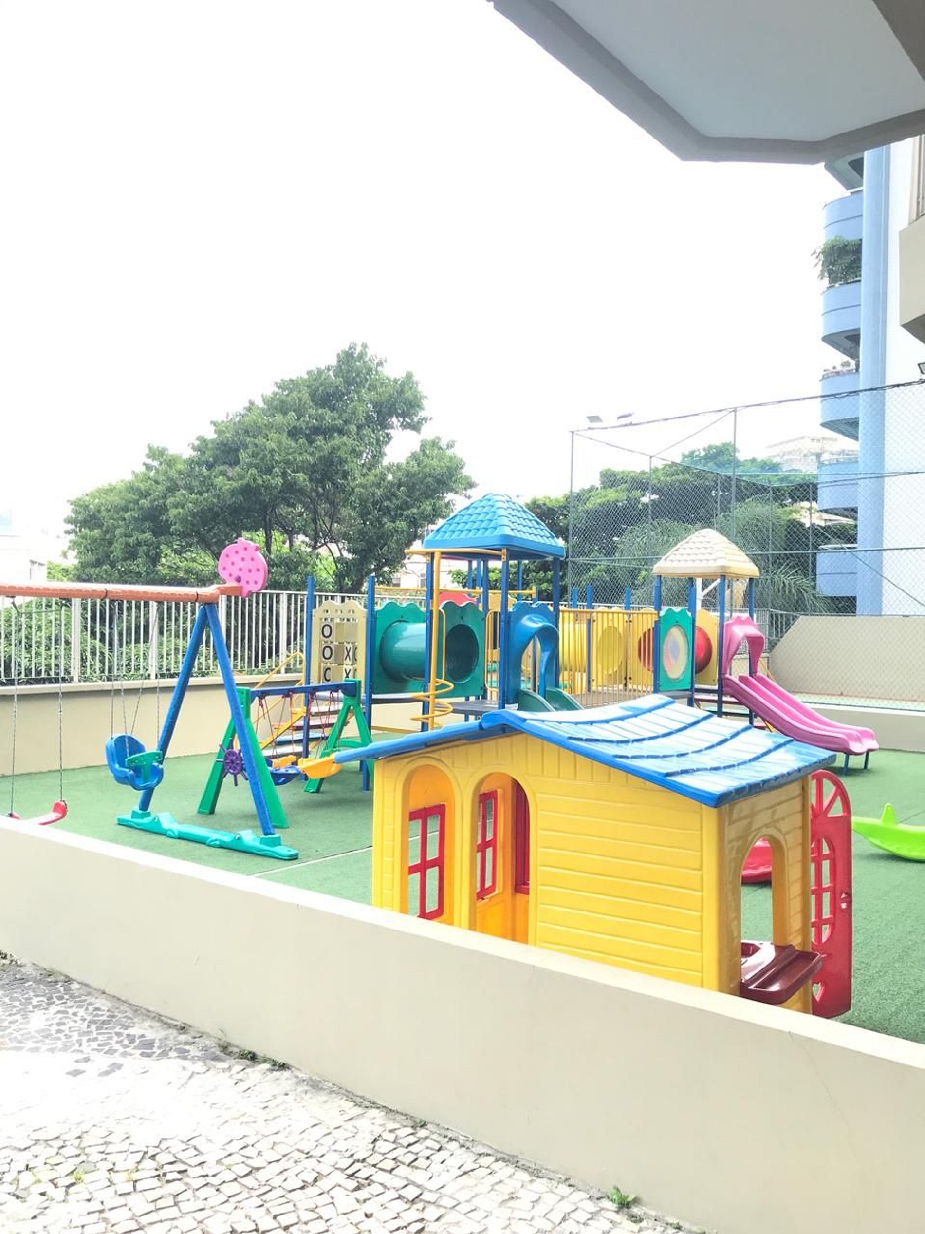 Bela área de lazer com piscina e parque infantil. Garagem disponível para um carro. Área muito segura a praia do Leblon fica a 10 minutos a pé. Portaria 24 horas.