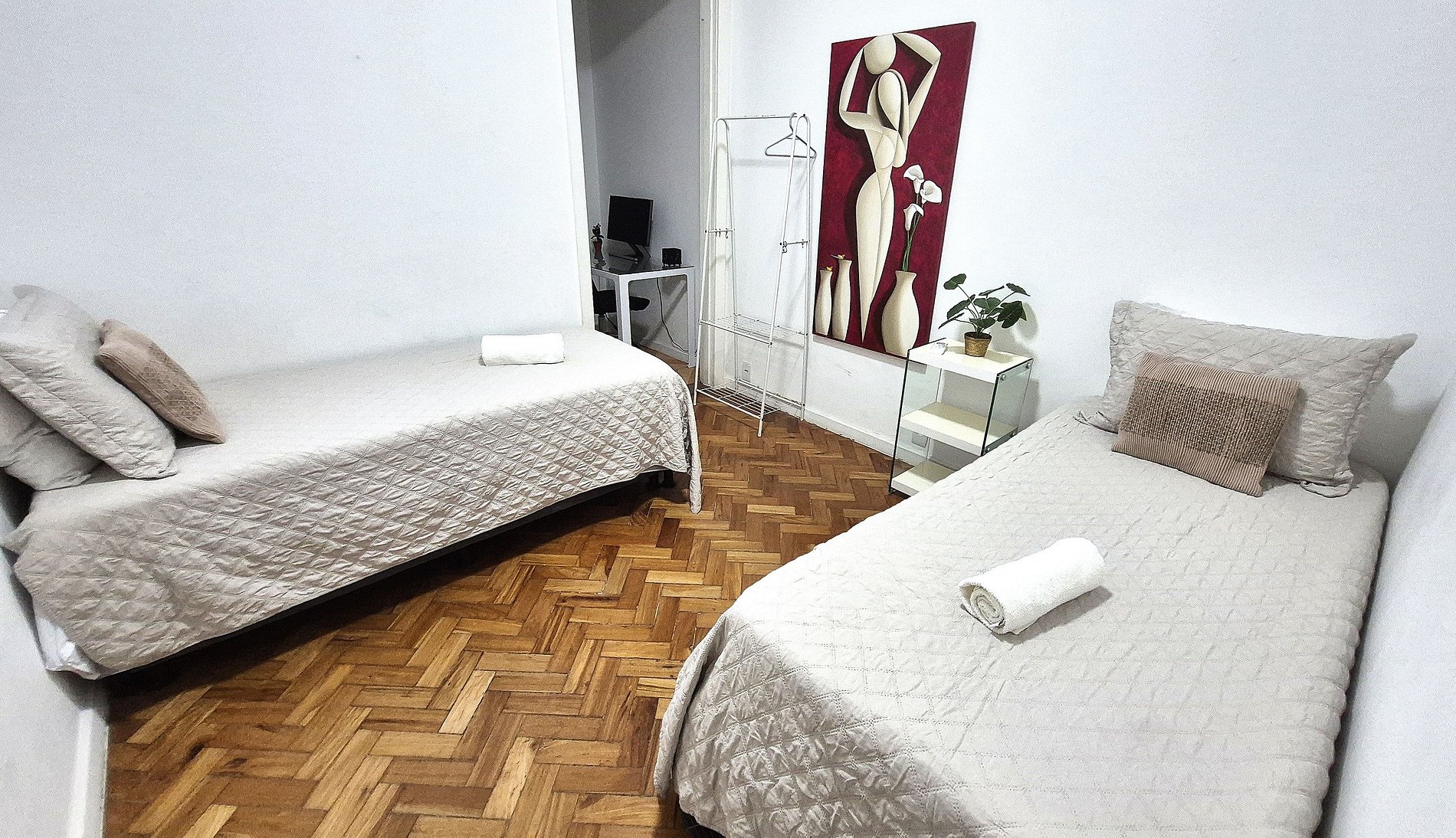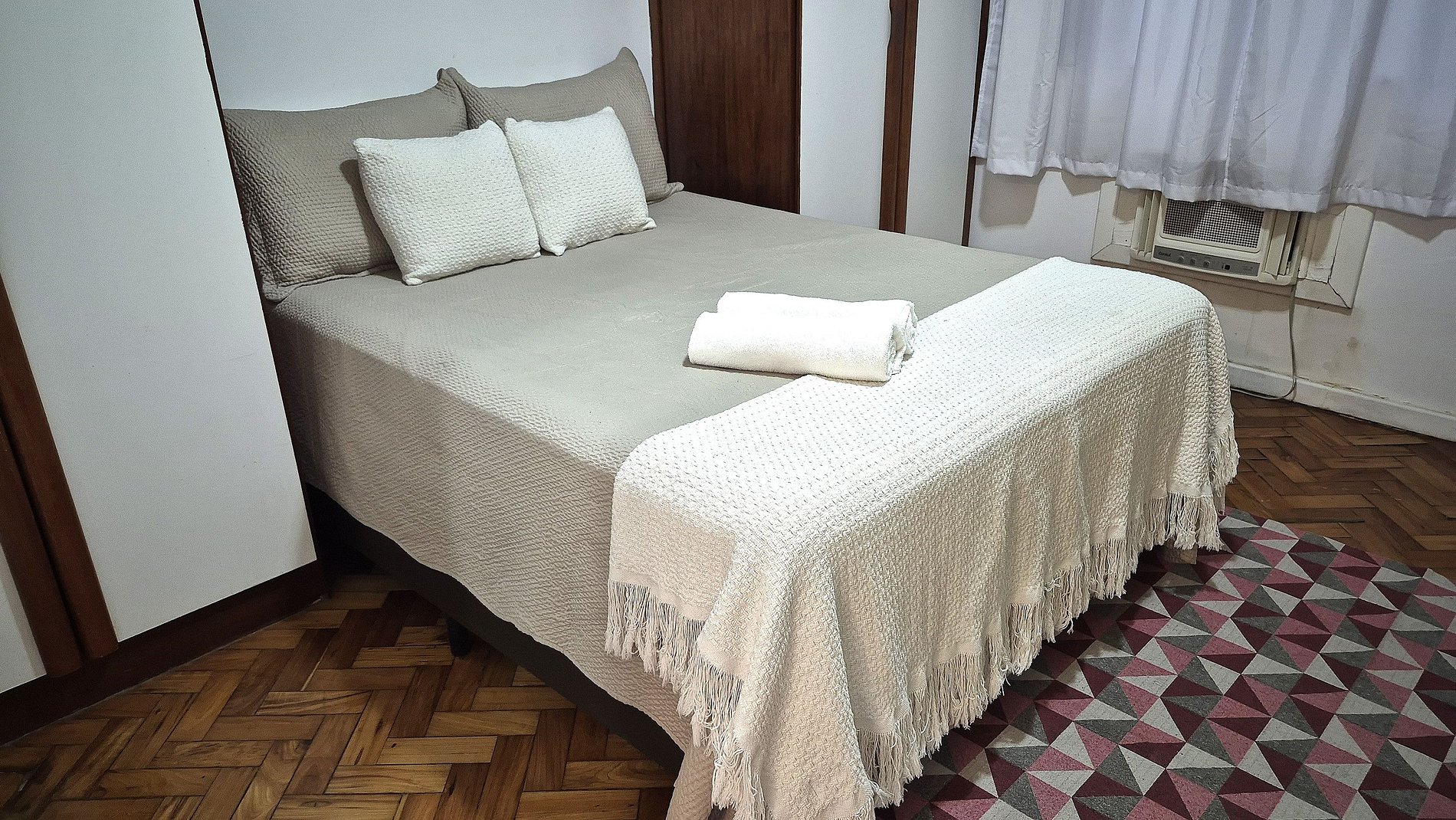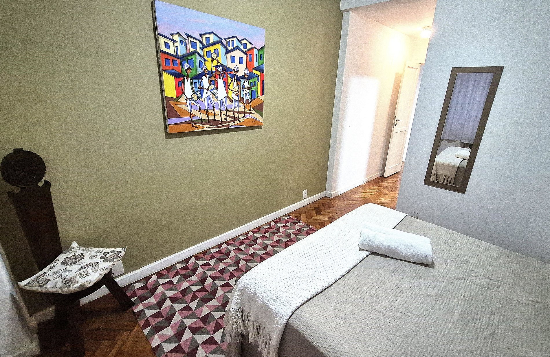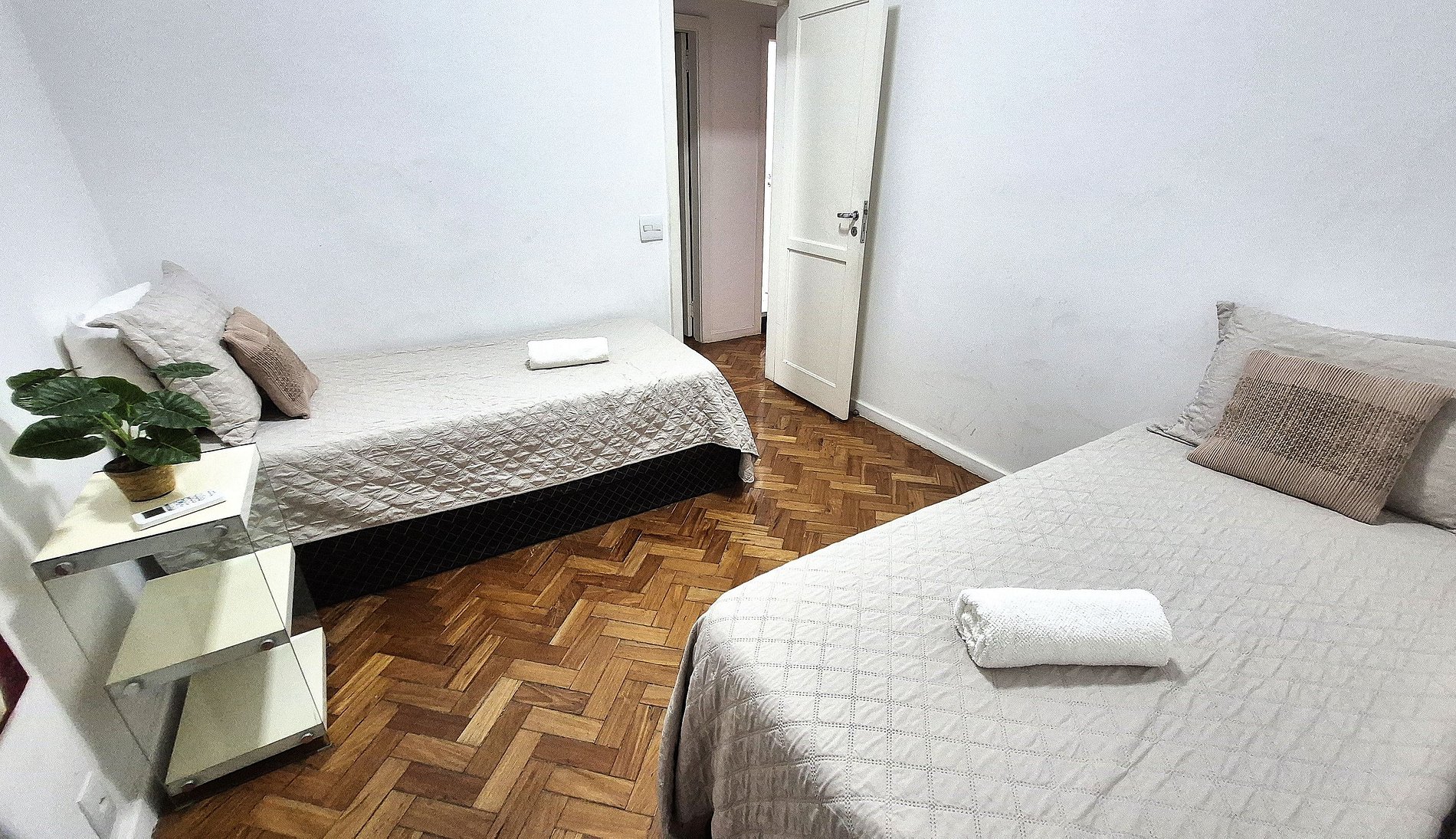 Conforto e privacidade para grupos de até 6 pessoas. A praia de Copacabana fica a poucos passos do predio. Temos 3 quartos, 2 banheiros completos + 1 lavabo. Na suite temos uma cama de casal, armário e ar condicionado. No segundo com cama de casal, armario e ar condicionado. No terceiro quarto temos 2 camas de solteiro + mesinha de trabalho ou estudo e ar condicionado. Sala de estar com TV tela plana, sofás, poltrona e uma bela cristaleira. Sala de jantar com mesa que acomoda bem 6 pessoas.
