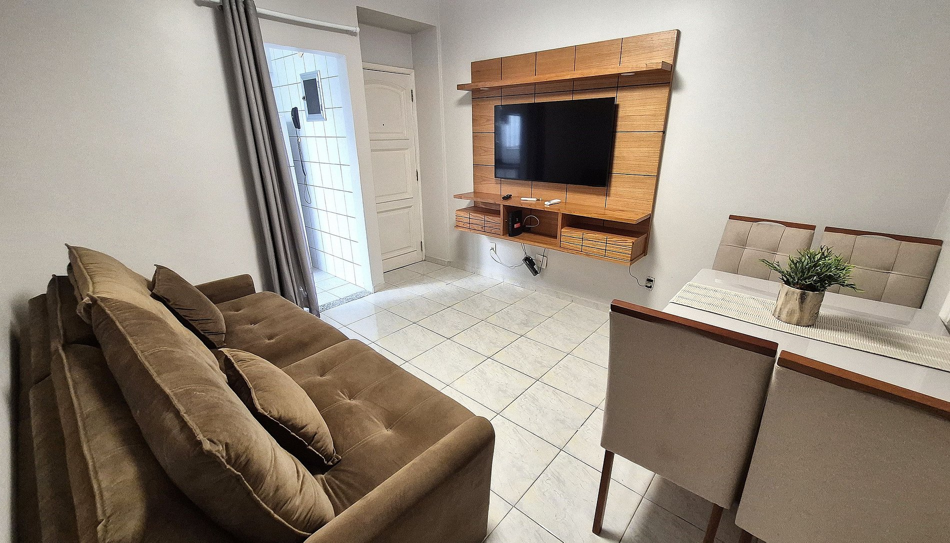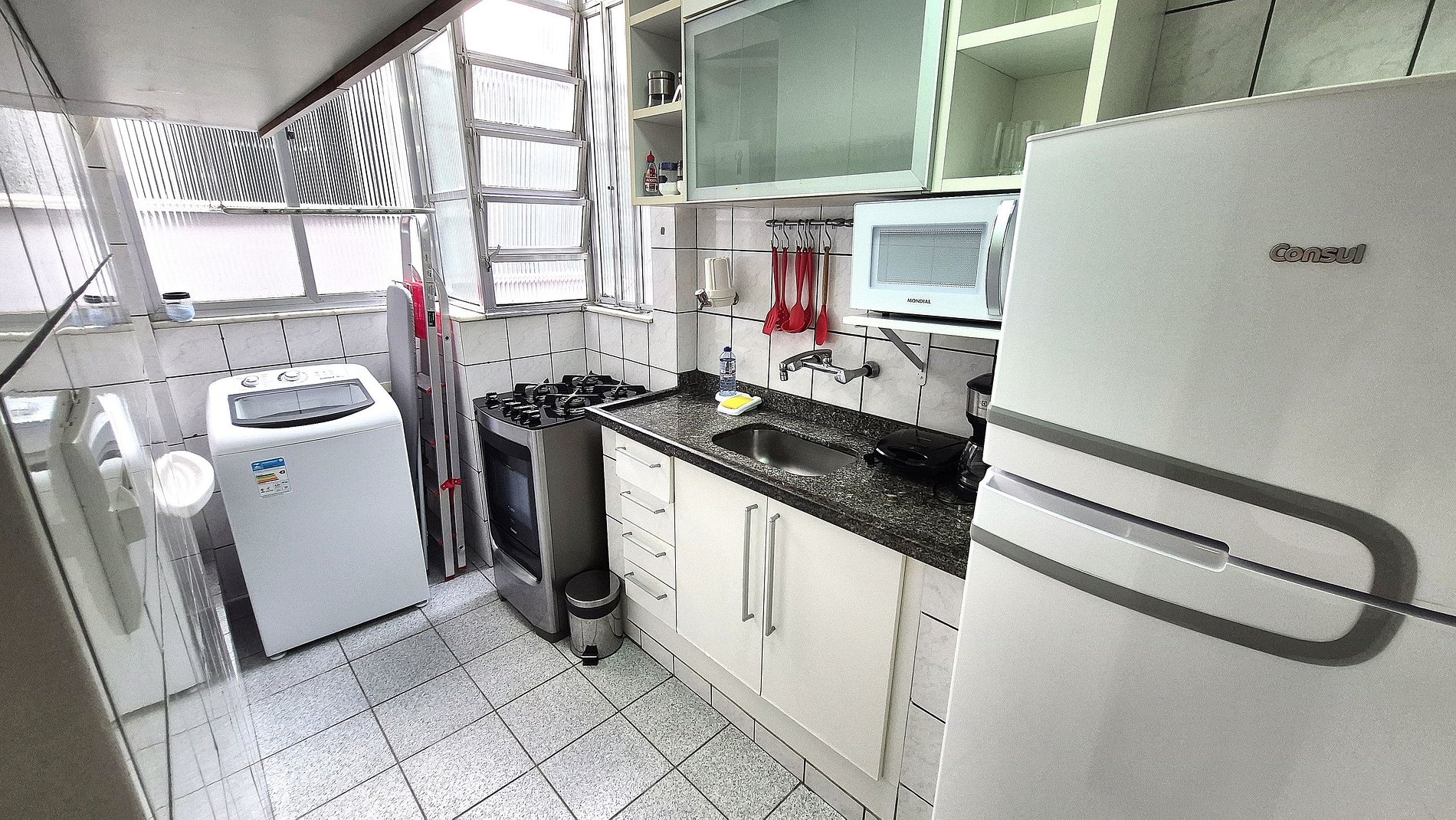 Apartamento muito silencioso, apenas uma quadra da praia Copacabana. No quarto temos uma cama de casal, armario, ar condicionado e TV. Na sala temos um sofa cama de casal, TV a cabo e mesa para refeicoes. Banheiro completo e cozinha bem equipada, com maquina de lavar roupas. Internet de alta velocidade com WIFI. Portaria 24 horas. Farto comercio nas redondezas, com supermercados, bares, restaurantes, bancos e academia de ginastica.